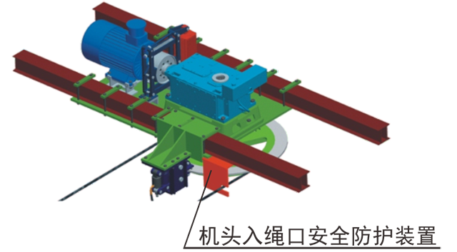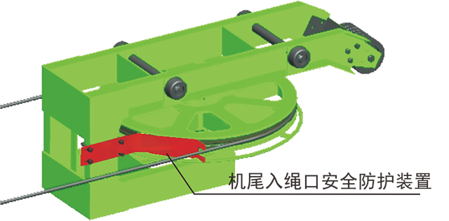 在驅(qū)動輪、迂回輪與鋼絲繩入口處,安裝了安全防護裝置,防止設(shè)備運行中有異物導(dǎo)入輪體而造成掉繩或人身傷害事故的發(fā)生。