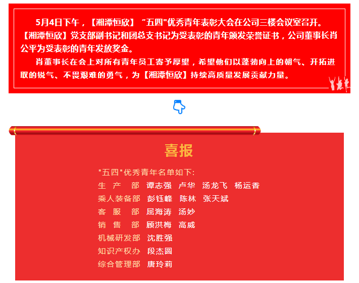 xiao12666@163.com【湘潭恒欣】團(tuán)總支開展"五四"優(yōu)秀青年表彰活動(dòng)