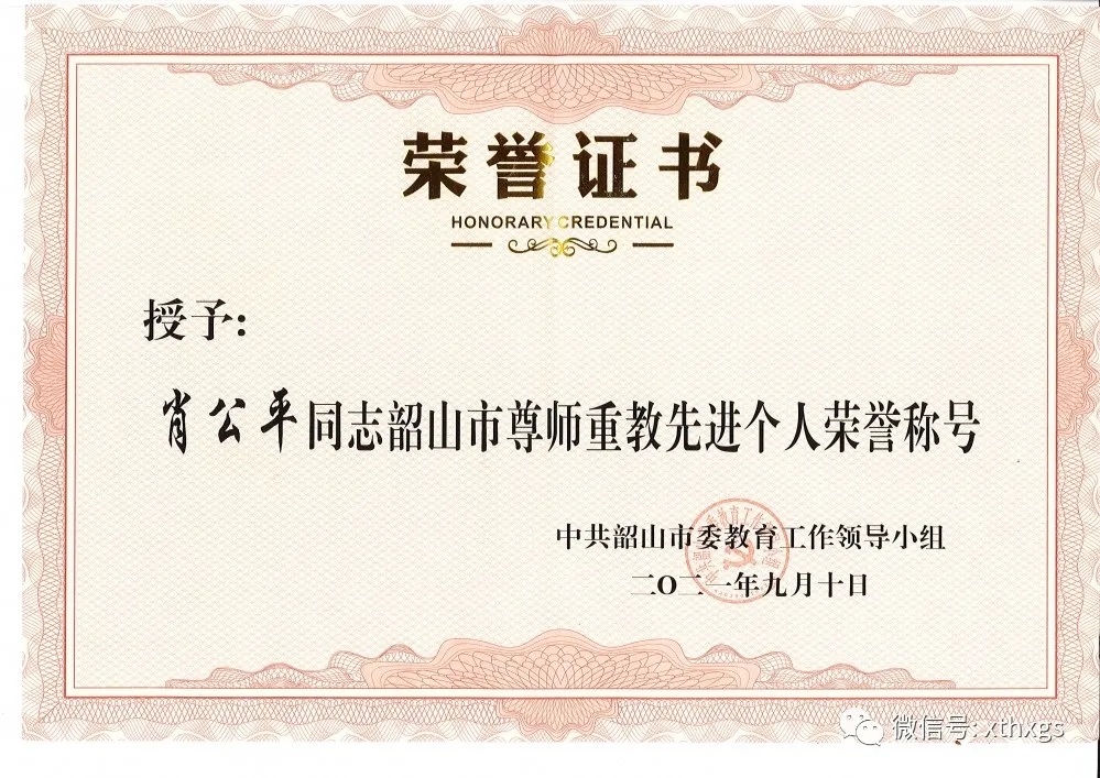 xiao12666@163.com【湘潭恒欣】董事長肖公平榮獲【韶山市尊師重教先進(jìn)個人】榮譽(yù)稱號