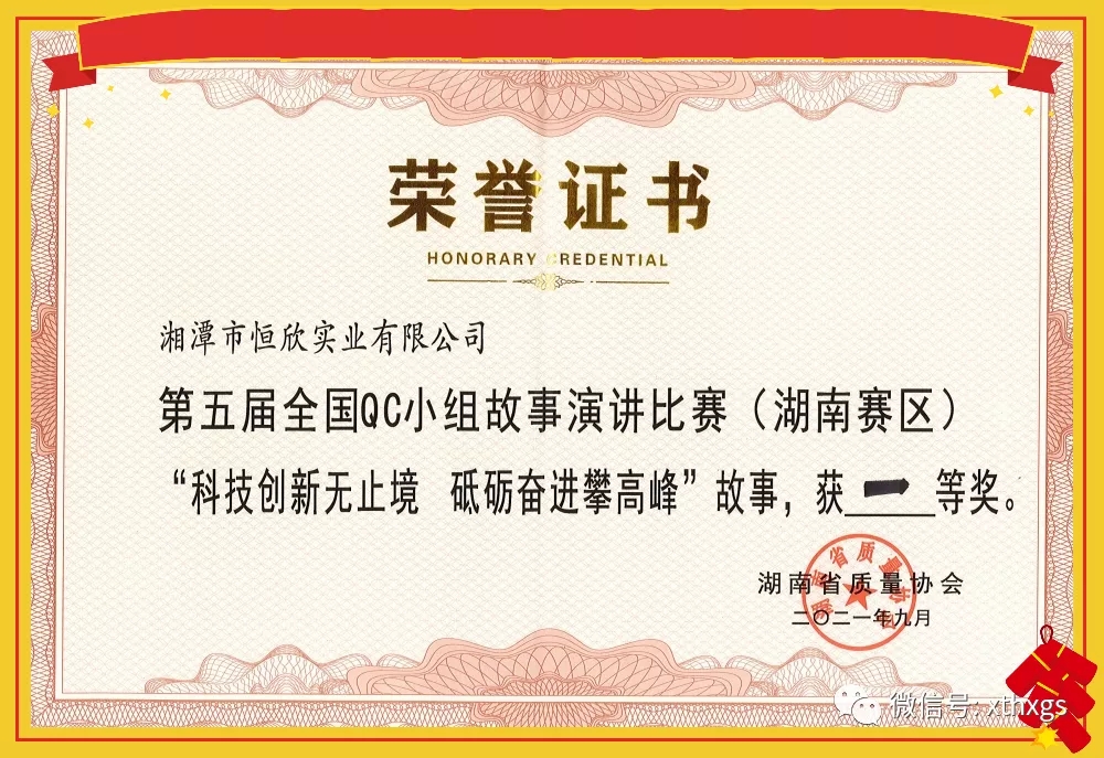 xiao12666@163.com【湘潭恒欣】榮獲第五屆全國QC小組故事演講比賽湖南賽區(qū)一等獎