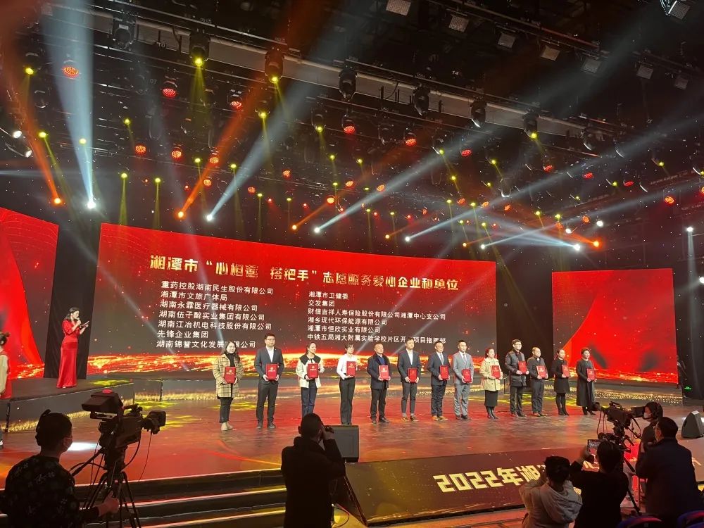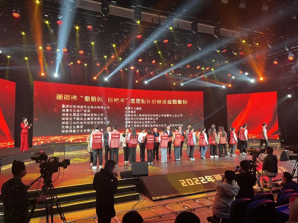 12月9日下午,由湘潭市文明委、市志工委主辦,市委宣傳部(市文明辦)、市志工辦承辦的2022年湘潭市“心相蓮·搭把手”志愿服務展示交流活動在湘潭市廣播電視臺演播廳舉行。市委書記、市文明委主任劉志仁出席活動并講話?!竞阈拦煞荨勘皇谟?湘潭市志愿服務愛心單位",公司總經(jīng)理肖薇受邀參加了此次活動并代表公司接受表彰。