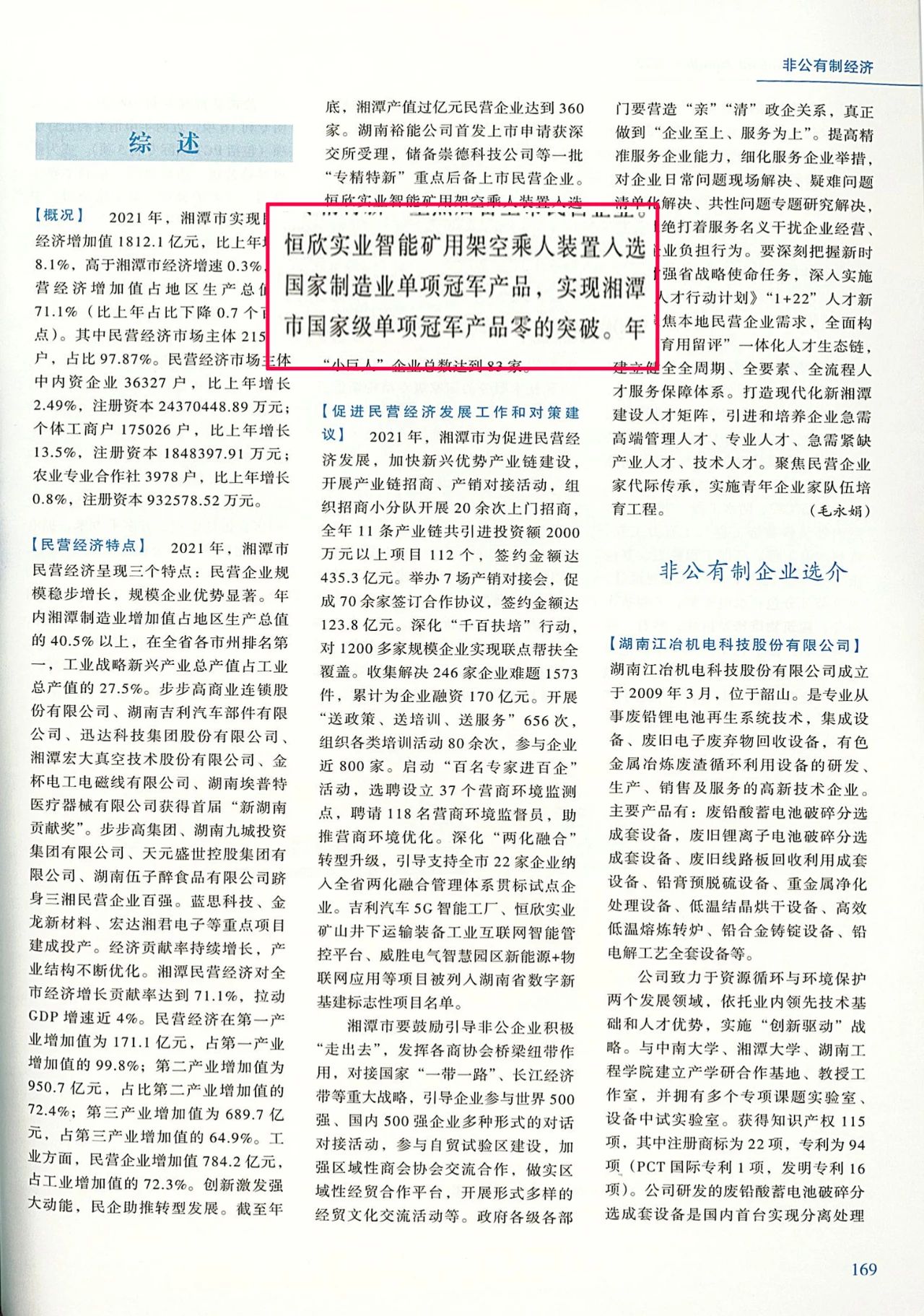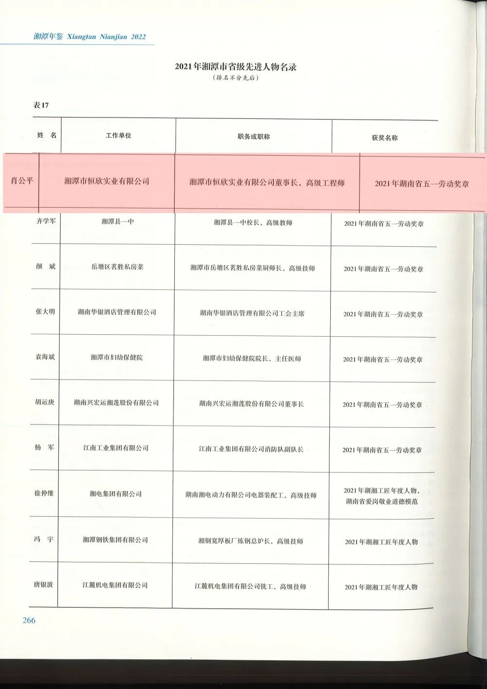 2022年出版的《湘潭年鑒》多個(gè)章節(jié)收錄了【恒欣股份】在科學(xué)技術(shù)、經(jīng)濟(jì)發(fā)展等方面取得的成績(jī),董事長(zhǎng)肖公平榮獲2021年湖南省五一勞動(dòng)獎(jiǎng)?wù)卤?/span>收錄在《湘潭年鑒》"2021年湘潭市省級(jí)先進(jìn)人物名錄“中。