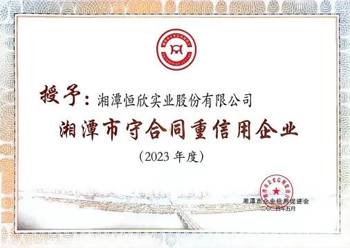 近期,【恒欣股份】先后被評(píng)為“2023年度湖南省守合同重信用企業(yè)”和“2023年度湘潭市守合同重信用企業(yè)”,【恒欣股份】已連續(xù)十一年獲得該榮譽(yù),成為行業(yè)誠(chéng)信經(jīng)營(yíng)的典范。