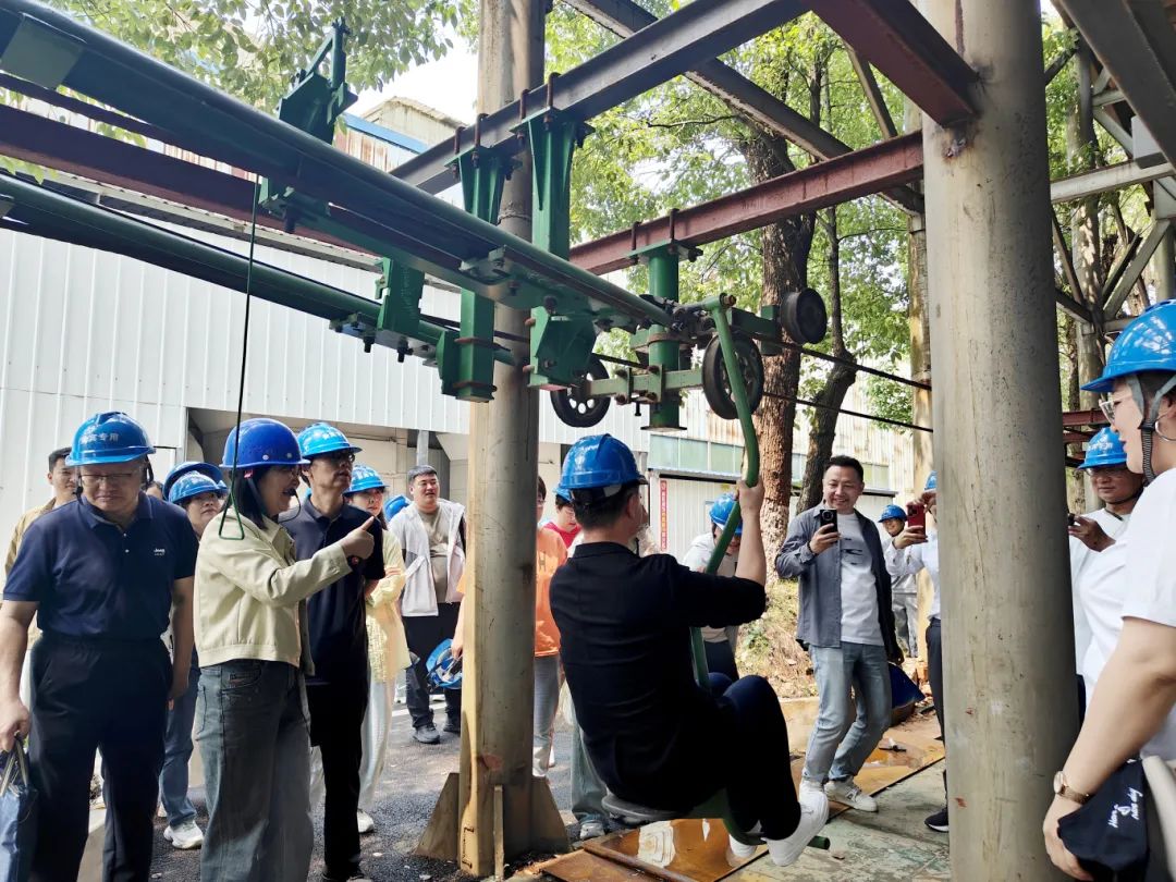 在顧總監(jiān)的引導(dǎo)下,考察團先后參觀了企業(yè)榮譽展廳、數(shù)控車間、機器人焊接車間及無人駕駛技術(shù)展示區(qū)等重點區(qū)域。在單軌吊無人駕駛試驗區(qū),考察團成員駐足觀看設(shè)備運行演示,對產(chǎn)品的智能無人駕駛技術(shù)表現(xiàn)出濃厚興趣。顧總監(jiān)詳細介紹了單軌吊的產(chǎn)品型號分類、驅(qū)動系統(tǒng)及搭載的AI攝像頭等技術(shù)優(yōu)勢,并結(jié)合實際案例分享了該產(chǎn)品在礦山領(lǐng)域的應(yīng)用成果。并在無人駕駛運行監(jiān)控中心通過現(xiàn)場專業(yè)人員的操作,監(jiān)控屏幕實時顯示單軌吊無人駕駛運行情況,考察團一行對無人駕駛技術(shù)給予了高度評價,對單軌吊的適用范圍廣、靈活性強、運輸效率高、安全可靠等優(yōu)勢贊不絕口。隨后,在猴車試驗區(qū)域,考察團成員興致勃勃地乘坐"猴車"進行體驗,通過親身體驗,大家對該設(shè)備簡便的操作方式和穩(wěn)定的運行性能給予了充分肯定。