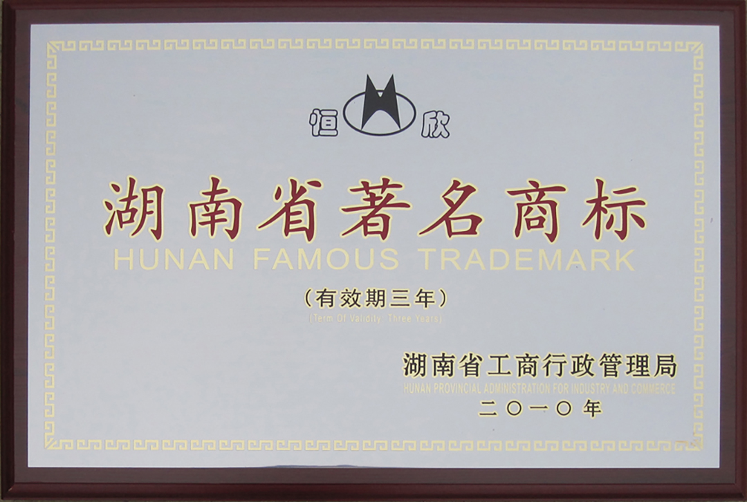 我公司“恒欣”被認(rèn)定為湖南省著名商標(biāo)