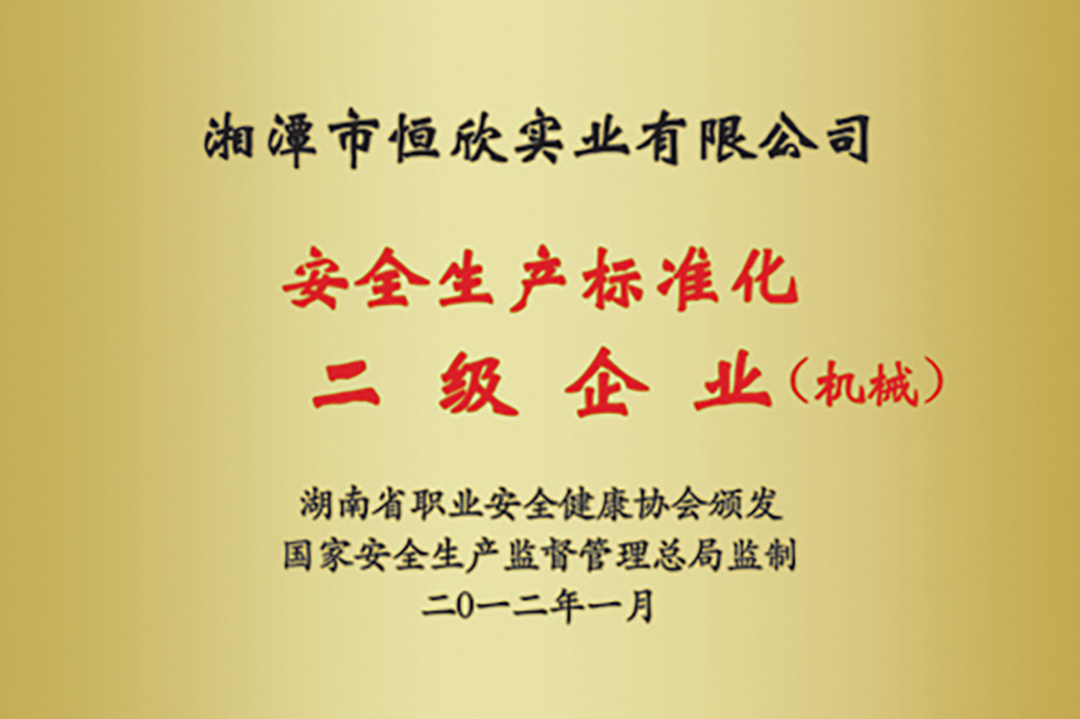 xiao12666@163.com熱烈慶祝“湘潭恒欣”被評為湖南省安全生產(chǎn)標(biāo)準(zhǔn)化二級達(dá)標(biāo)企業(yè)