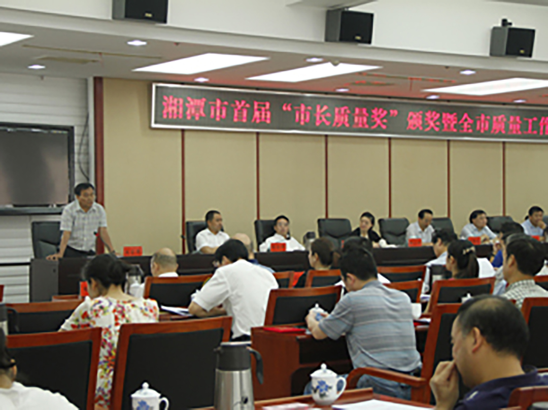 6月13日,湘潭市首屆“市長質量獎”頒獎暨全市質量工作會議在湘潭市政府會議室召開,省質量技術監(jiān)督局蔣新祺局長、湘潭市委副書記、市長胡偉林、副市長吳小月等領導參加了會議。