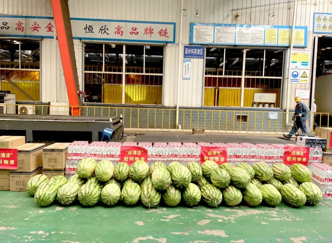 盛夏時(shí)節(jié),烈日炎炎。市委書記曹偉宏一行,在【恒欣股份】董事長肖公平的陪同下,來到車間為奮戰(zhàn)在高溫一線的員工送去了解暑降溫物品——防暑藥品、西瓜、礦泉水等,不僅傳遞了政府對高溫一線員工的關(guān)心,也向一線員工不畏酷熱、堅(jiān)守崗位的精神表達(dá)了敬意。