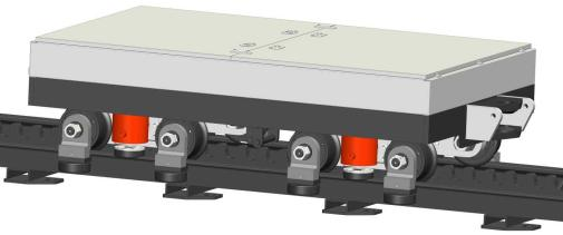在每個(gè)驅(qū)動(dòng)部卡軌裝置設(shè)計(jì)對(duì)軌道制動(dòng)裝置 ,用于機(jī)車上坡溜車和機(jī)車下坡飛車時(shí)的緊急制動(dòng) 。制動(dòng)力滿足牽引力1.5~2.0倍要求 ,對(duì)軌制動(dòng)器的制動(dòng)力直接作用在兩側(cè)軌道上,制動(dòng)停車安全可靠。