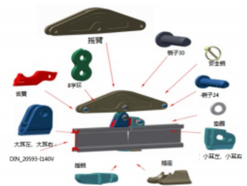 道岔應(yīng)用于單軌吊軌道分道,其分為左開道岔、右開道岔、雙開道岔(對稱道岔)。