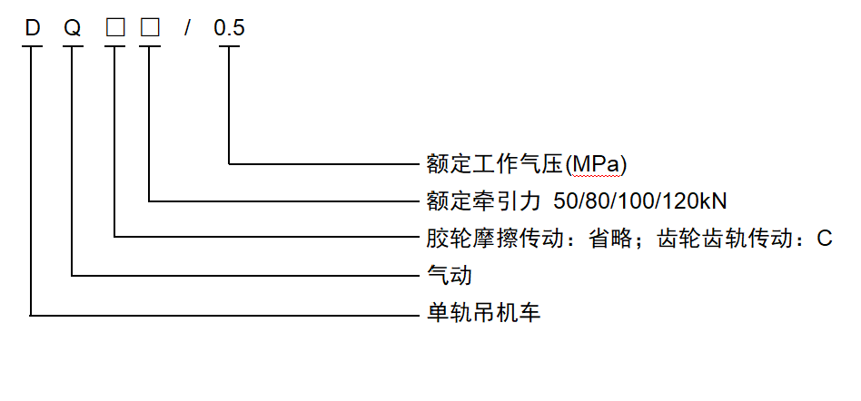 氣動(dòng)單軌吊車性能參數(shù)表